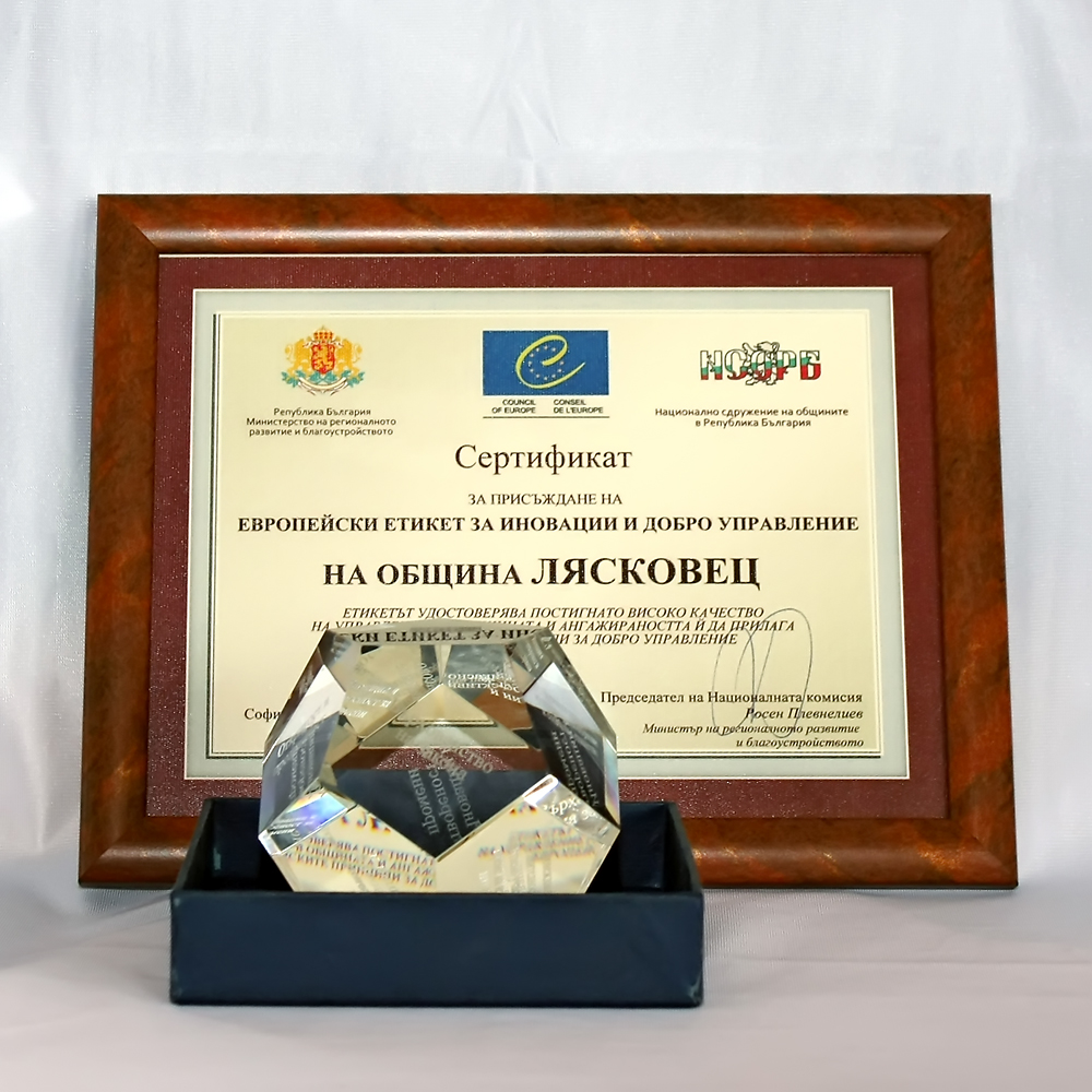 На официална церемония на 27 май 2011 г. в Министерски съвет д-р Ивелина Гецова, кмет на Община Лясковец, заедно с кметовете на още 12 български общини, получи Етикет за добро управление на Съвета на Европа от г-н Росен Плевнелиев, министър на регионалното развитие и благоустройството. Етикетът представлява сертификат за базово качество на управлението на общината, като удостоверява, че общината прилага всеки от 12-те принципа за добро управление над средното ниво. Община Лясковец е сред малкото общини, които са получили максимална оценка, като освен доказателства за прилагане на принципите, е направено допитване сред общинските съветници и гражданите на общината.