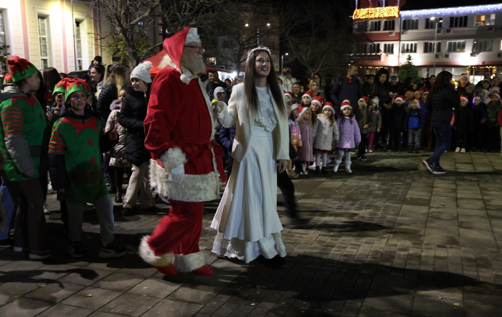 Кметът Христов поздрави малчуганите и брои с тях от 10 до 1 и тогава се случи първото вълшебство – грейна градската елха в най-разноцветни светлинки. Възторжени детски викове огласиха площада, а небето се озари и от празнични илюминации.